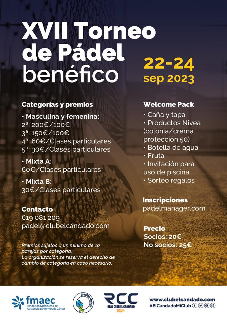 XVII TORNEO BENÉFICO de PÁDEL a beneficio de FMAEC y CANDADO SOLIDARIO