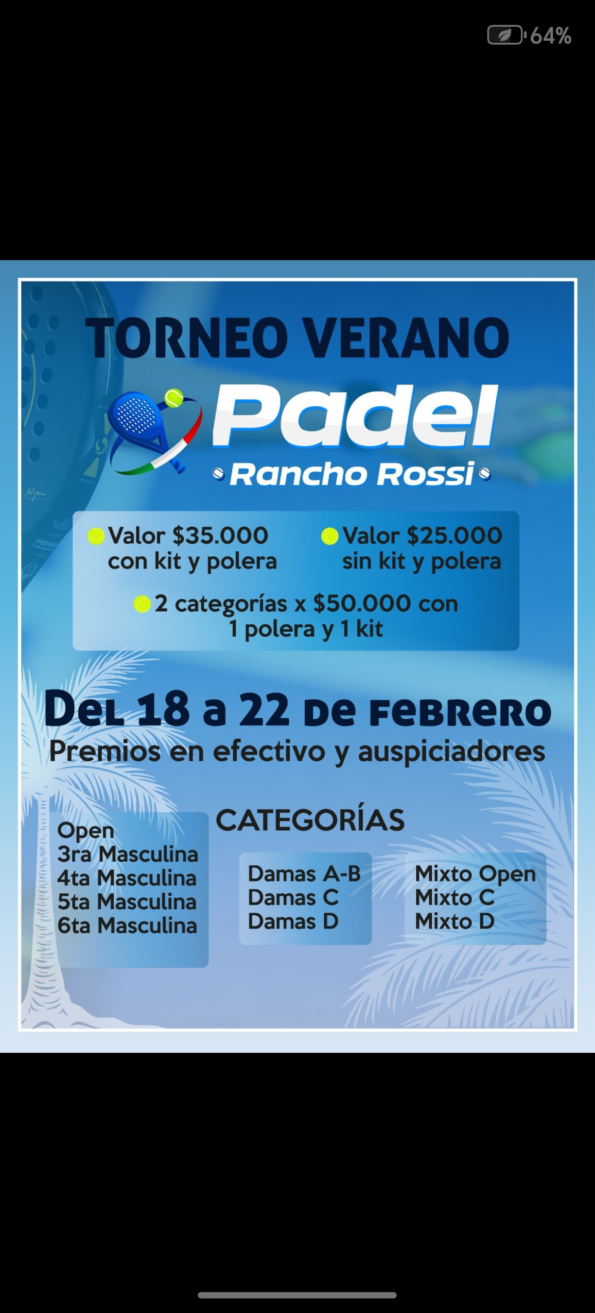 TORNEO 2DO ANIVERSARIO PADEL RANCHO ROSSI
