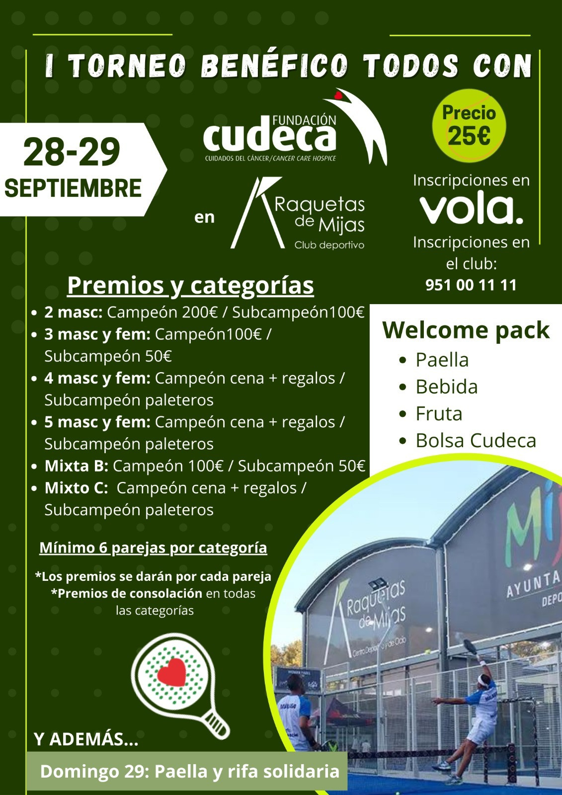 Raquetas de Mijas es un centro deportivo, social y de salud de nueva creación, pero con una clara vocación de colaborar con la comunidad de Mijas y alrededores, en la difusión de valores de Salud, Ocio, Deportivos y Sociales una apuesta de calidad !!! Nuestras modernas instalaciones y nuestra localización a pocos minutos de tres núcleos urbanos muy importantes de la Costa del sol; Fuengirola, Mijas y Marbella nos dan un marco incomparable para dar servicio a muchas personas habitantes habituales y otros de paso que elegirán estas instalaciones en sus periodos vacacionales. Personal cualificado en todas las áreas deportivas, de formación para la salud y el bienestar. Raquetas de Mijas trabaja para estar con las técnicas mas modernas y las ultimas tendencias en las ramas deportivas y de fitness, para que nuestros usuarios tengan una vivencia actual de la SALUD el DEPORTE y el OCIO. La familia es nuestro objetivo primordial, que todos los miembros de ella tengan un espacio para desarrollar sus gustos en nuestras instalaciones .